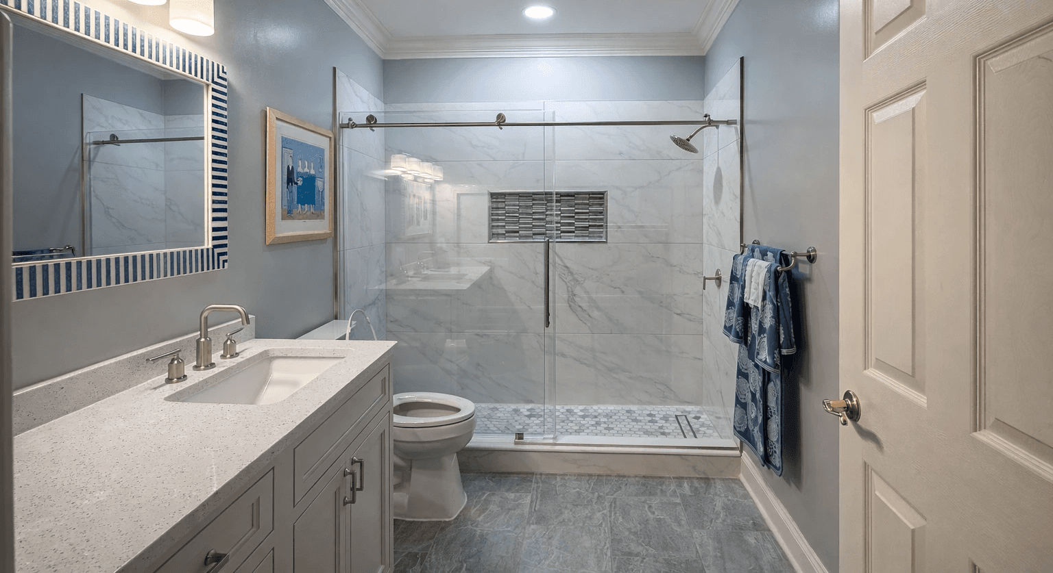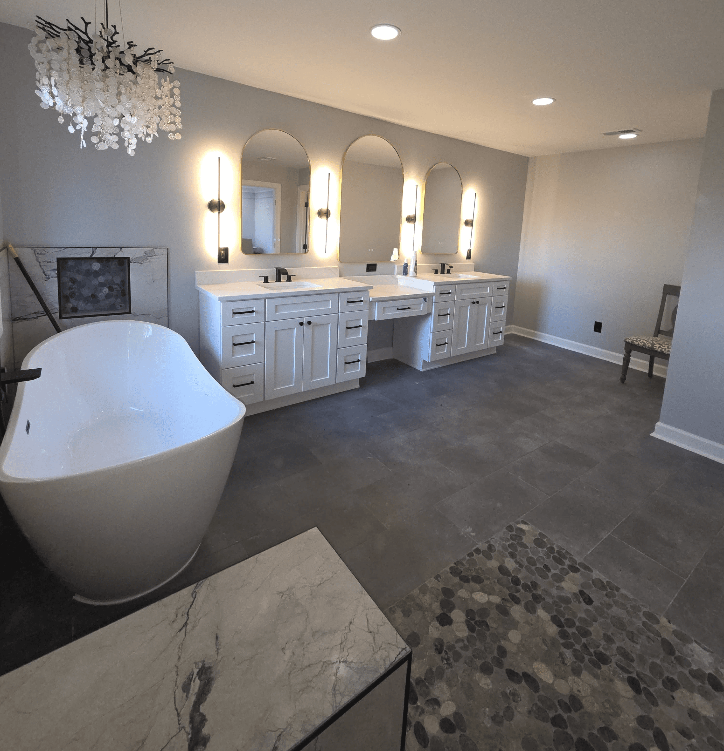 The crew was fast, friendly, and highly skilled. Everything turned out amazing - their tile guys do incredible work! We love our new bathrooms!